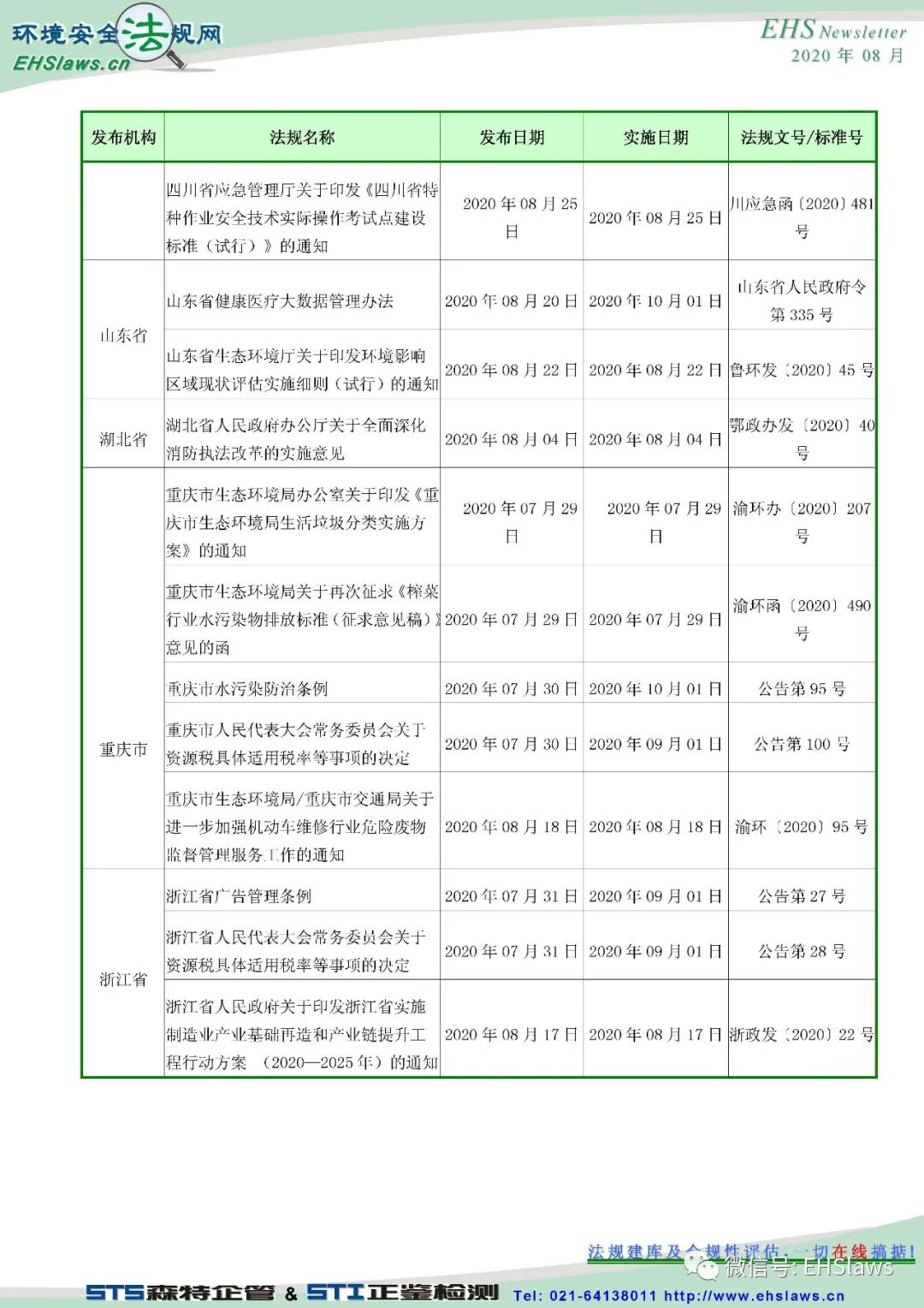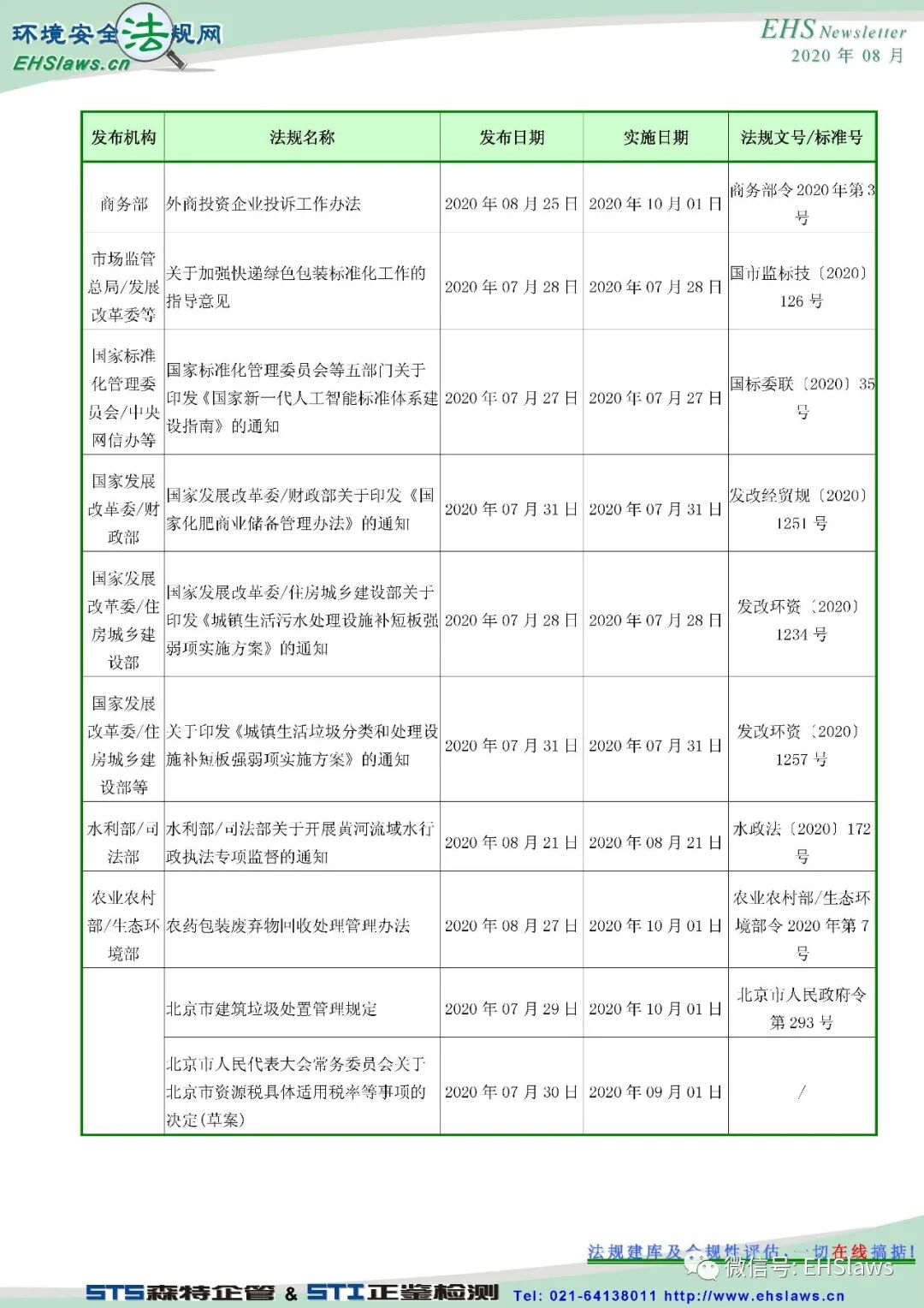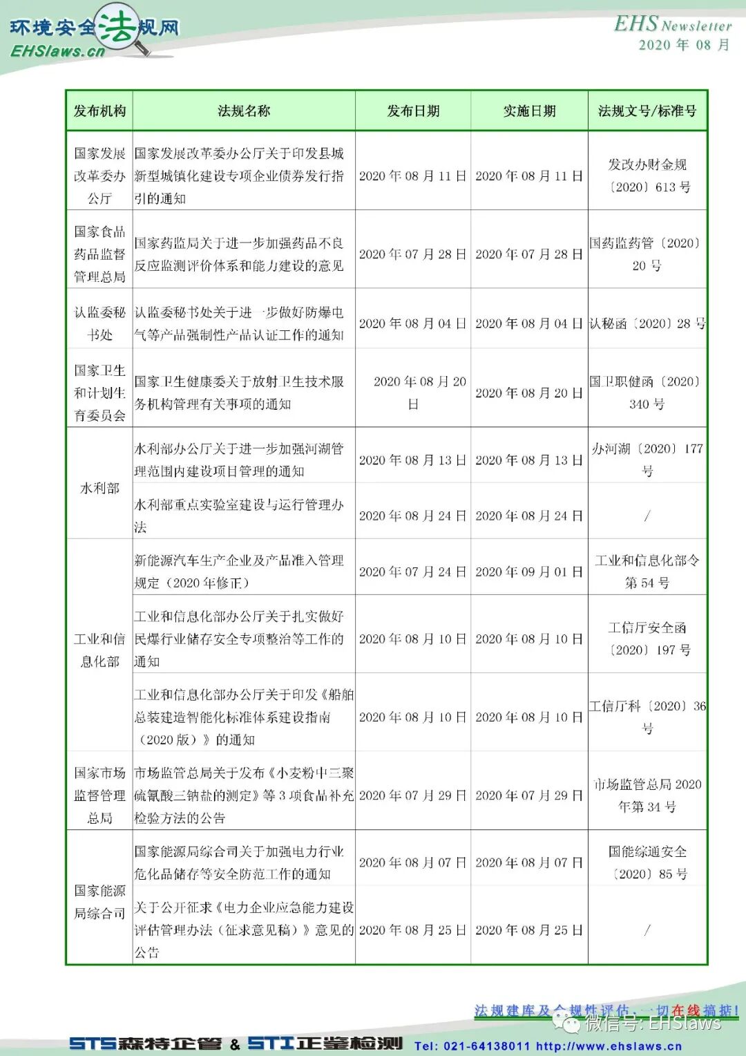 2020年8月中国环境健康安全新法规最新信息,请参考!