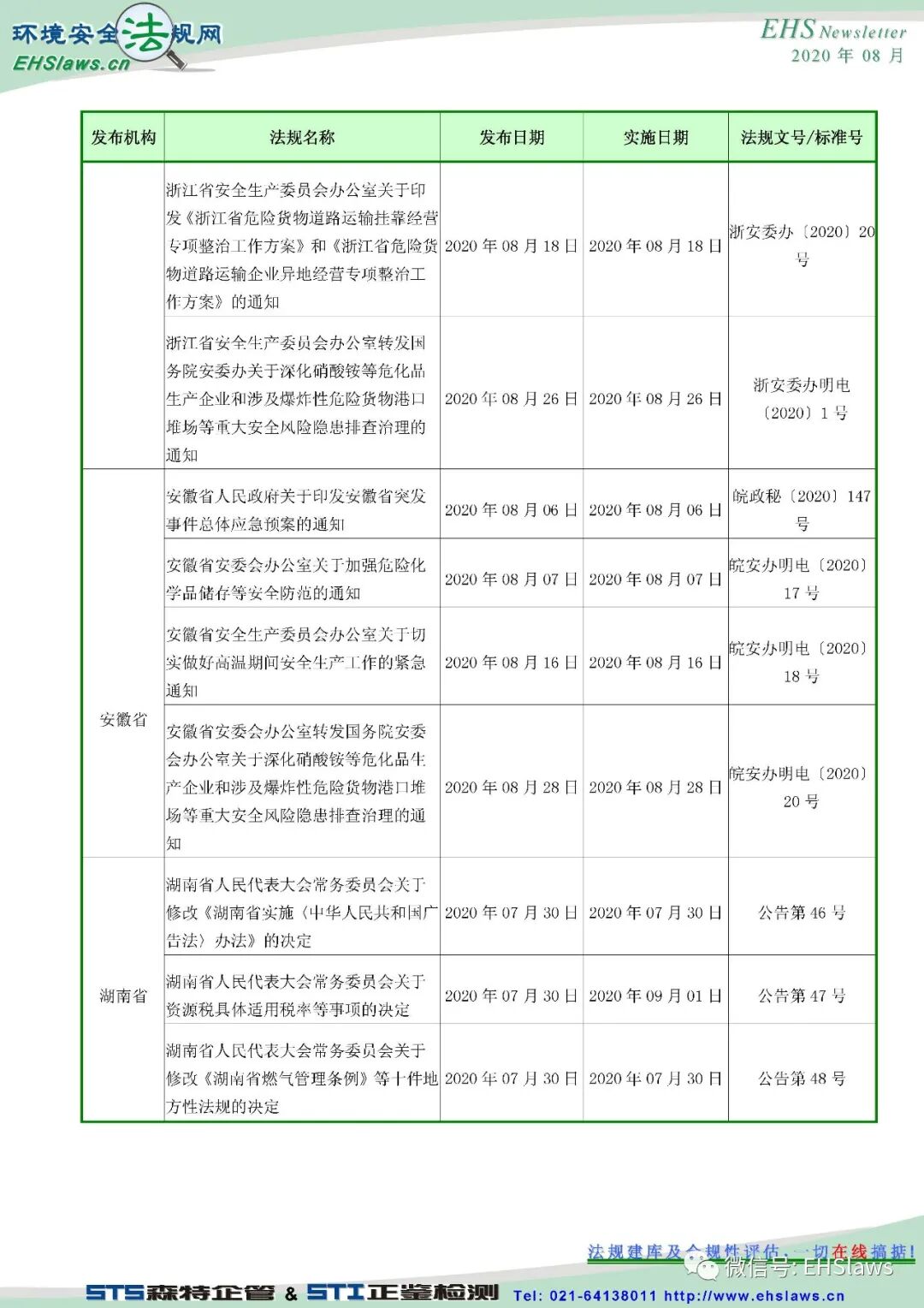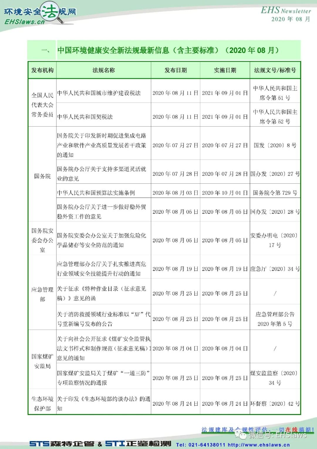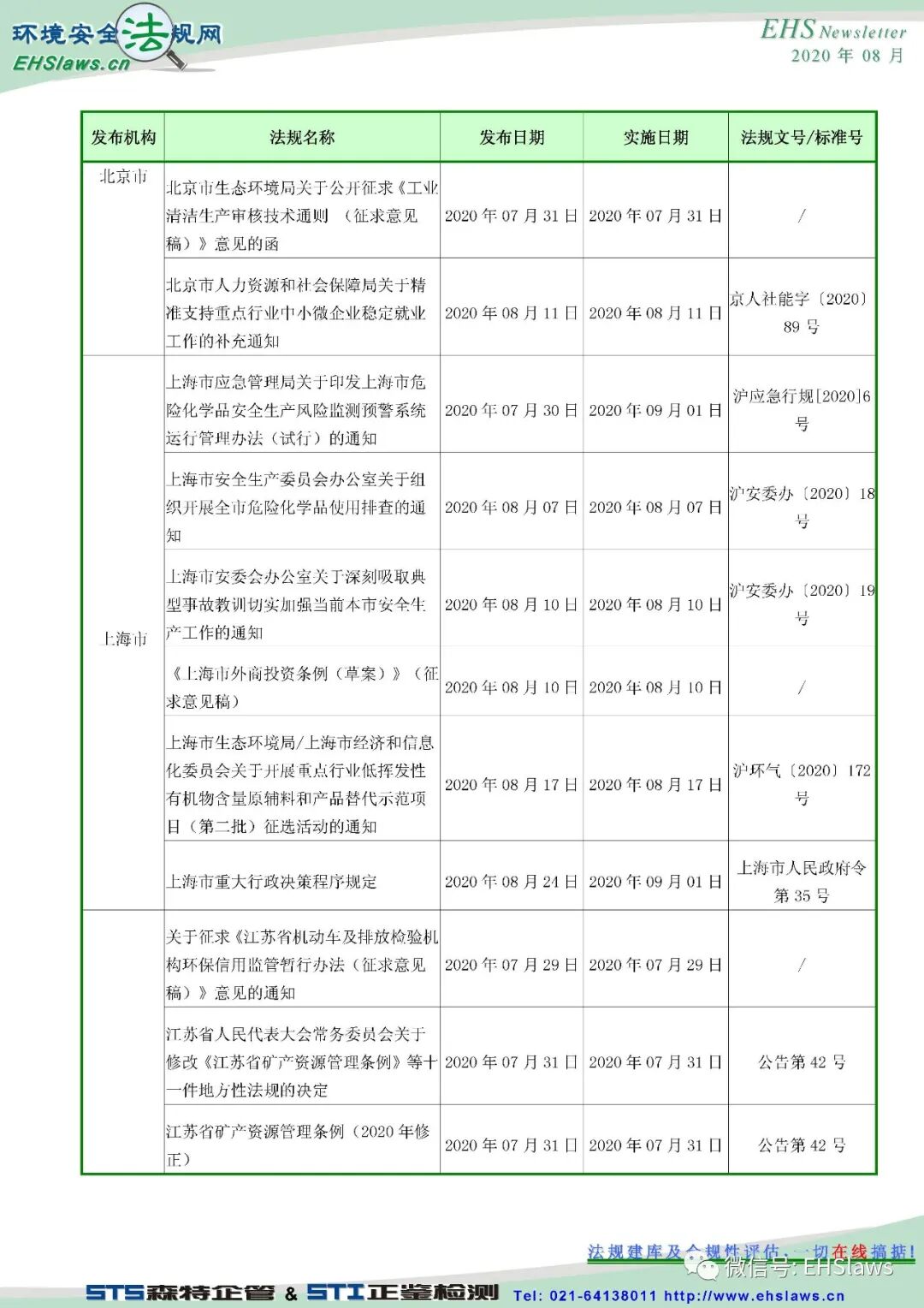 2020年8月中国环境健康安全新法规最新信息,请参考!