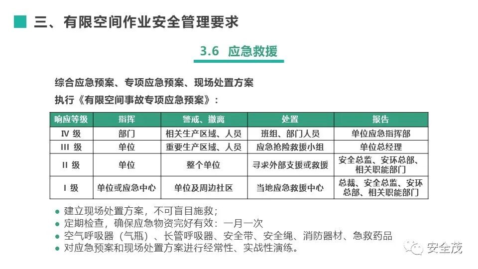 柜——应急柜。污水处理设施现场设置应急柜,应急救援物资装备参考《危险化学品单位应急救援物资配备标准》(GB30077-2013),空气呼吸器等确保2套以上,应急装备清单应写清种类、数量、存放地点。