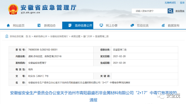 事故二:2月17日,安徽突发有限空间中毒事故,2死1伤!