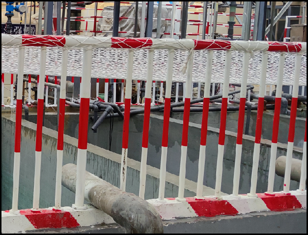 网——防坠网。污水池顶部安装符合国家标准的防坠网。