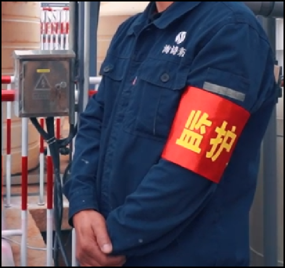人——作业监护人。设置专人进行监护,监护人佩戴监护人袖章,全程监护,不得擅自离岗。