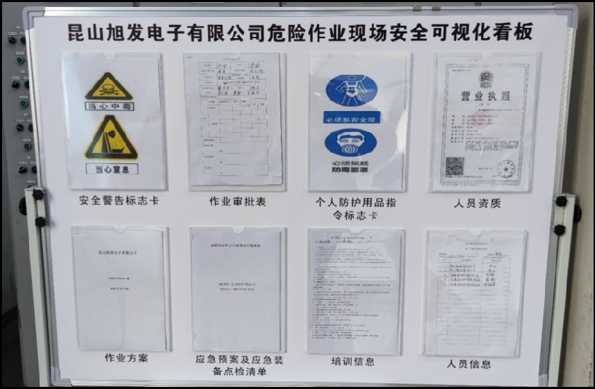 板——可视化看板。根据《昆山市工贸行业危险作业全流程安全管理指引手册》的规范,制作可移动式危险作业安全可视化看板。