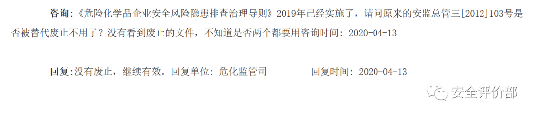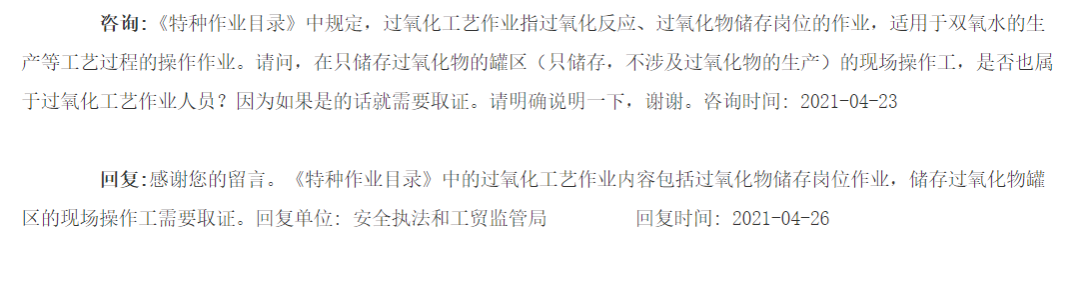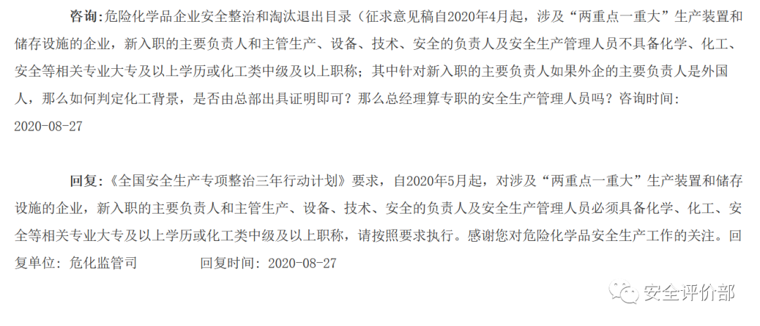 2021年5月11日更新内容:更新了“第一章综合性问题答复汇总”中的第1~2项。“二、危险化学品企业安全技术及管理的咨询答复汇总”中的第1项。