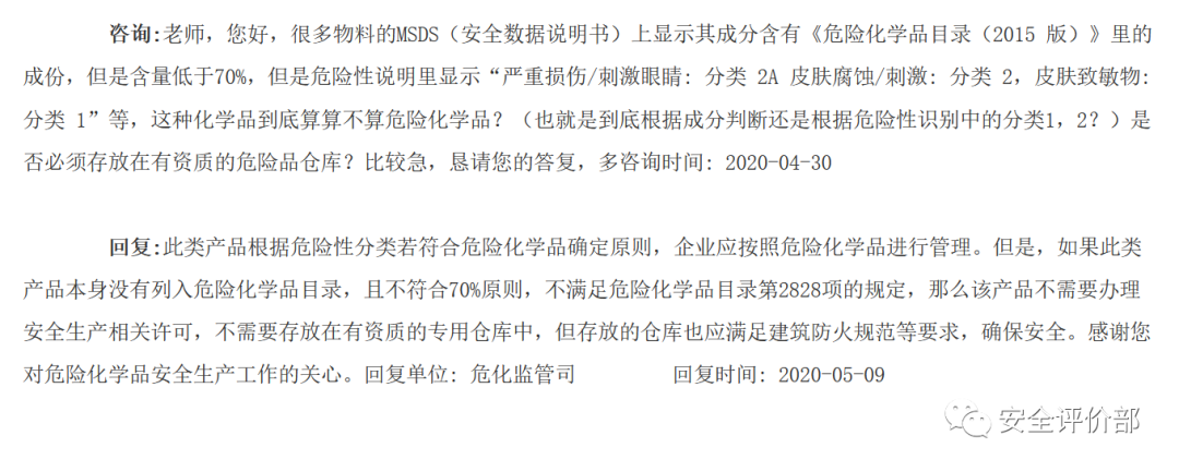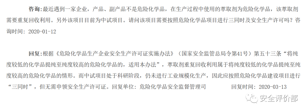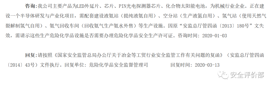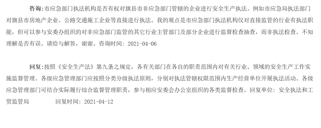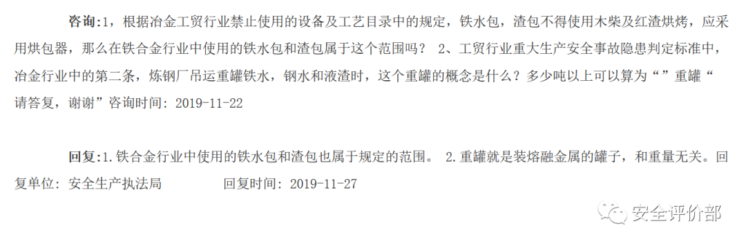 根据近几年应急管理部对咨询问题的答复,对涉及到安全技术和管理的问题进行整理、归类,完成本文,供各位安全从业人员学习、交流。主要大类有综合性问题、危险化学品问题、金属冶炼问题、矿山问题以及其他问题的咨询答复汇总,具体如下: