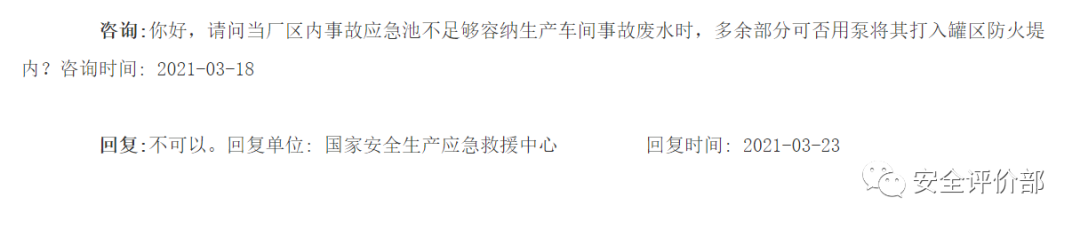 14、厂区内事故应急池不足够容纳生产车间事故废水时,多余部分可否用泵将其打入罐区防火堤内?