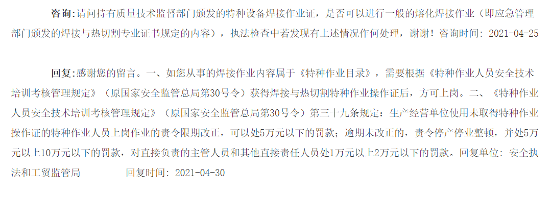 6、持有特种设备焊接作业证是否可以进行一般的熔化焊接作业
