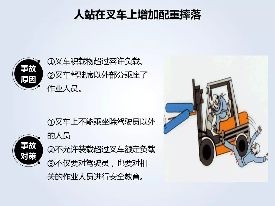 解答:首先,叉车上站人肯定不允许,属于违规操作,因为叉车的设计是用来搬运货物。不是载人作业。平台和安全带虽可保人不会坠落。但叉车本身发生意外的话,就很难说了。
