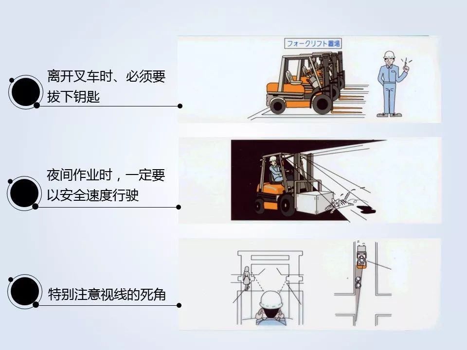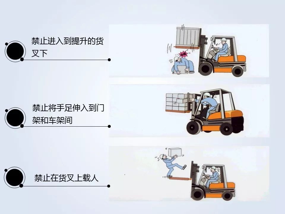 1、作业现场其他人员没有与叉车保持安全距离时必须立即停止作业;