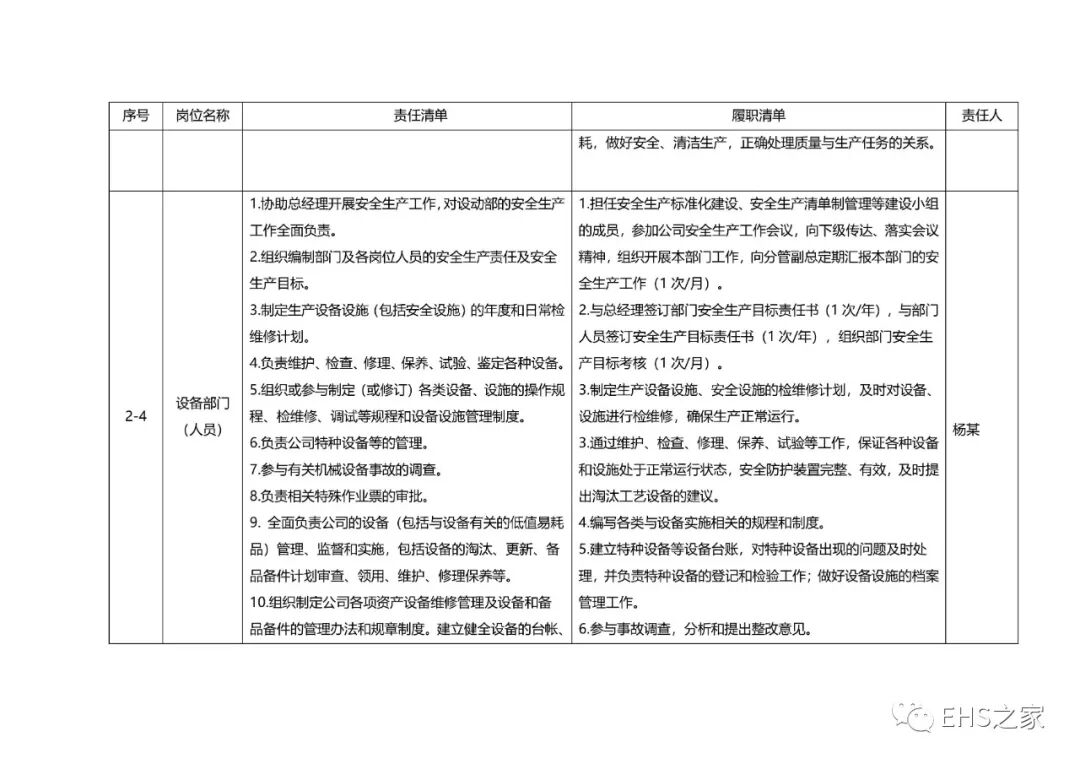 4.设备、电气、仪表等专业部门,按照职责分工对设备、动力、电气、仪表、建(构)筑物及安全、消防设备设施的安全稳定运行负责,对设备、电气、仪表设施(包含备用、停用设备)的完好性负责,对专业范围内设备设施的更新、改造、维修、验收等过程负责,对设备、电气、仪表检维修过程的作业安全负责,强化设备、电气、仪表设施全生命周期管理。对专业范围内的风险分级管控与隐患排查治理负责,对租赁和处置资产的安全管理负责,对设备安全管理制度、维护检修规程的制修订和适宜性负责,对安全仪表的功能安全有效性负责,对所辖业务内发生的变更负责,对所辖业务的承包商安全管理负责。按照权限分工对设备、电气、仪表等事故事件进行调查处理。